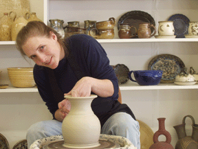 We were recently featured on Traveling WV a segment on WCHS a local news station. Follow this link for the Story. Gauley River PottersJohn and Mary discovered the true beauty of almost heaven on the banks of the New River and Gauley River. Living and working in the whitewater industry opened their eyes wide to the fluid works of nature. It seems only logical that they made the transition from whitewater to pottery.Mary's Experience on and off the wheelMary Bethune began her career in pottery while attending Marshall University. She instantly fell in love with this craft that combines both art and science into a magical creation. Mary also apprenticed with two master potters in her years following her attendance at Marshall. During those years she worked without influence to let her own inspirations and instincts guide her to create this unique line of work.Mary's InspirationMary's love for pottery grew out of her love for whitewater. While attending Towson State University in Maryland, Mary learned how to roll a kayak in a swimming pool with 4 fellow club members. With limited whitewater experience Mary had a deep drive to learn more about this new passion she had found in the kayak. In the summer of 1992 Mary trained for her first year as a whitewater rafting guide on the Cheat River in Northern West Virginia. It did not take long for Mary to learn that West Virginia was where she needed to be. That summer Mary worked in Maryland coaching a summer swim team and traveled every weekend back to WV to paddle various creek and rivers across the state. August of that summer Mary trained to be a video kayaker on the New River followed by working her first season on the Gauley River. The next semester of college was at Marshall University were she found pottery. The next few years were spent pursuing both her passions. Mary worked her summers on the river filming rafting trips and dreaming of pottery and worked her winters in her pottery studio dreaming of kayaking. During her career in whitewater Mary focused on filming from her kayak on all sections of the New and Gauley Rivers. She also worked as a kayak instructor for beginners up to advanced intermediates for many of those years. She also took many opportunities to guide rafts on the New and Gauley Rivers. In 1997 Mary began the transition to pottery full time. Chasing oar powered rafts down the river no longer intrigued her as much as becoming a full time potter. Now Mary works full time in her studio with her husband. Both of them Enjoy the river with family and friends. When you do not find Mary in the studio she is probably spending time with her three sons and husband John or paddling a local river for a whitewater fix.