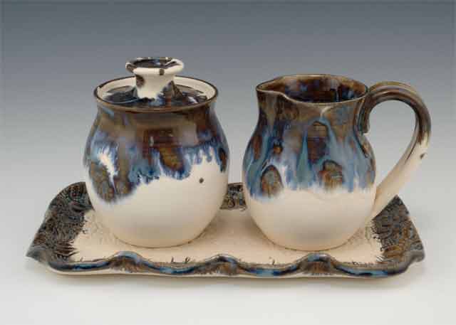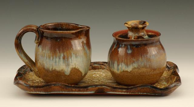 a small canister and a lovely pressed tray. Both the cream pitcher and the