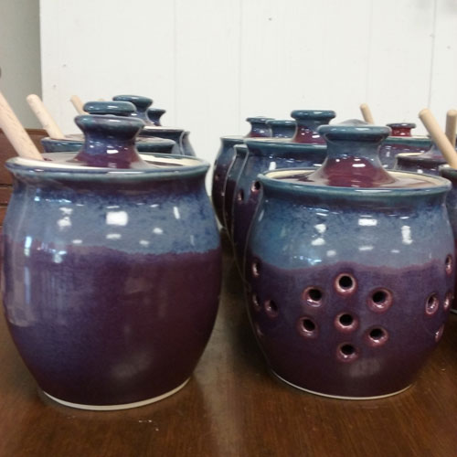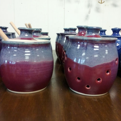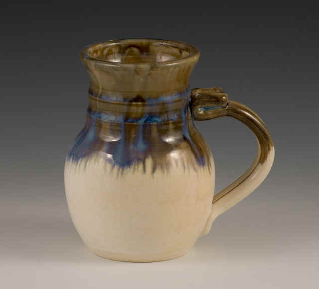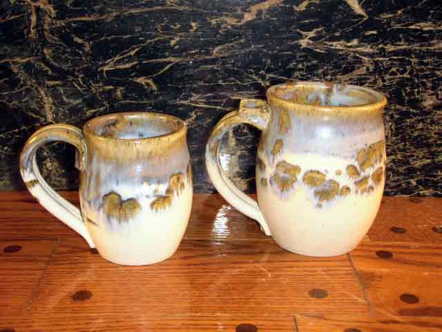 Welcome I have my mugs front and center.  More items are listed on the left with the glaze choices on the right.  Check out the rest of the page for information about us the potters.  We are active on the other social media sites listed.  We even have videos of us working.