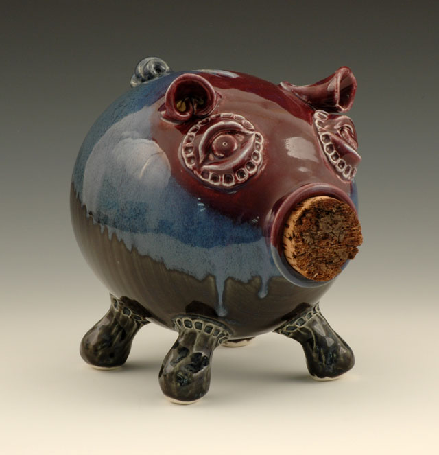 Handmade with a great personality! $85"that's some pig"Who wouldn't want to take this piggy home with them. Traditional Coin Banks with a cork nose so you don't have to break the bank. 7"x7" |